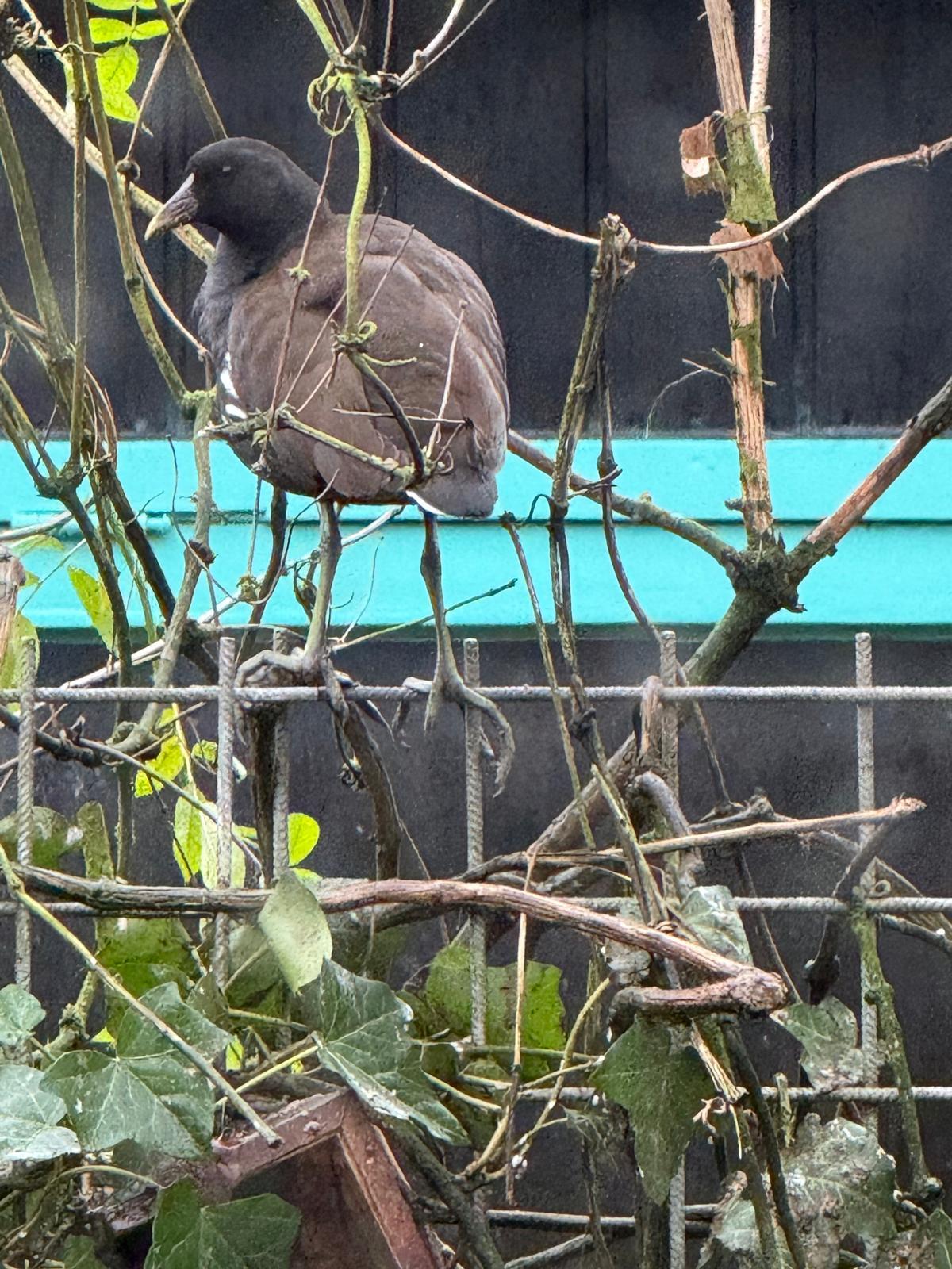 \15 januari: Bij Meerzicht zit een Waterhoen op een hek, een niet-alledaagse waarneming (waarneming en foto: Daniëlla van Gennep).