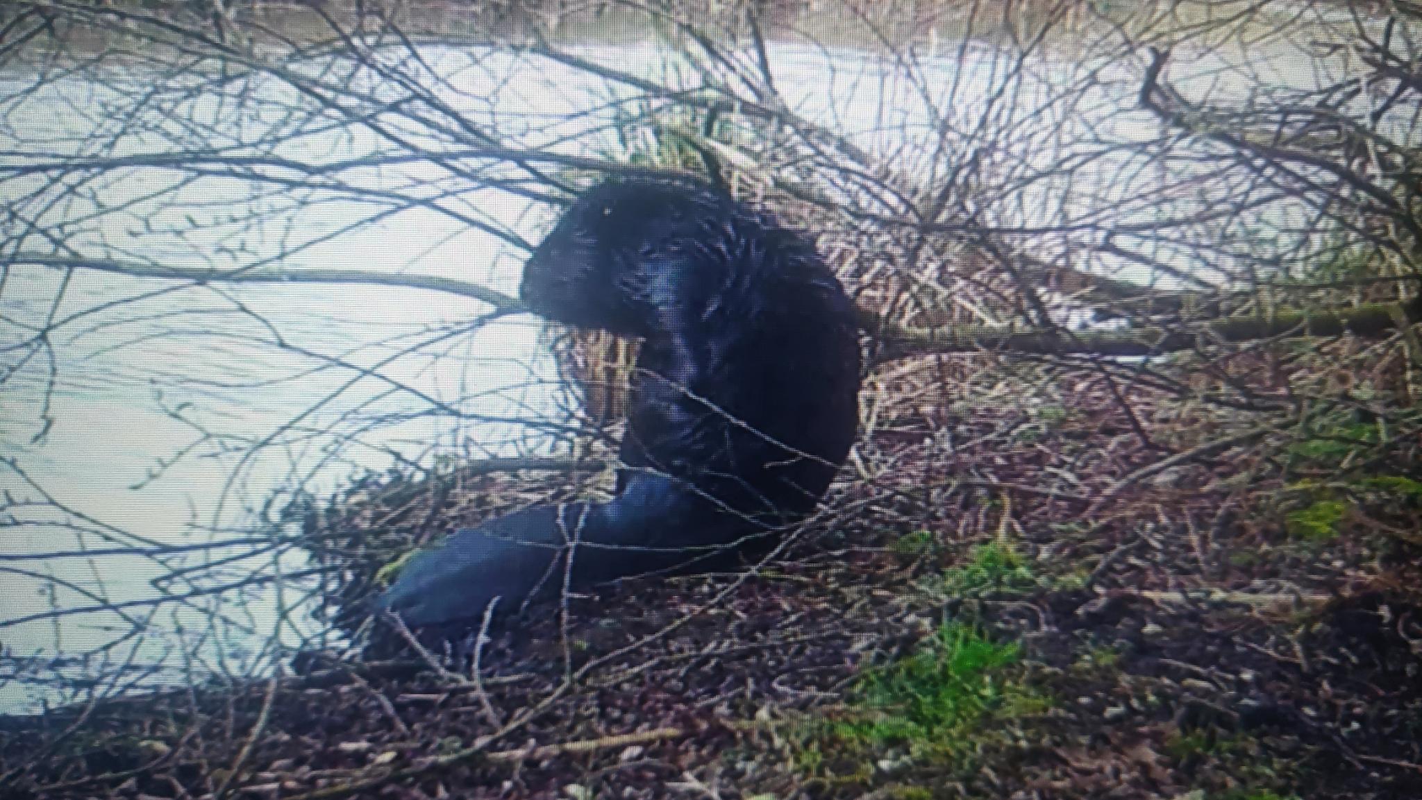 Bij het Kijkscherm is een Otter te zien, elders op de Madijk is een Hermelijn actief (waarnemer en foto: Kees Beeftink).
