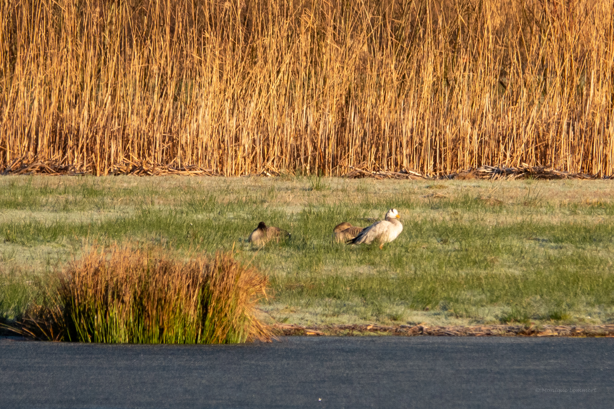 Bij de Lettelberter Petten zit op de plas een man Nonnetje en 2 man Pijlstaart. Ook is hier in De Onlanden weer eens een Indische Gans te zien. In het riet zit een Tjiftjaf (waarnemer en foto: Monique Lommert).