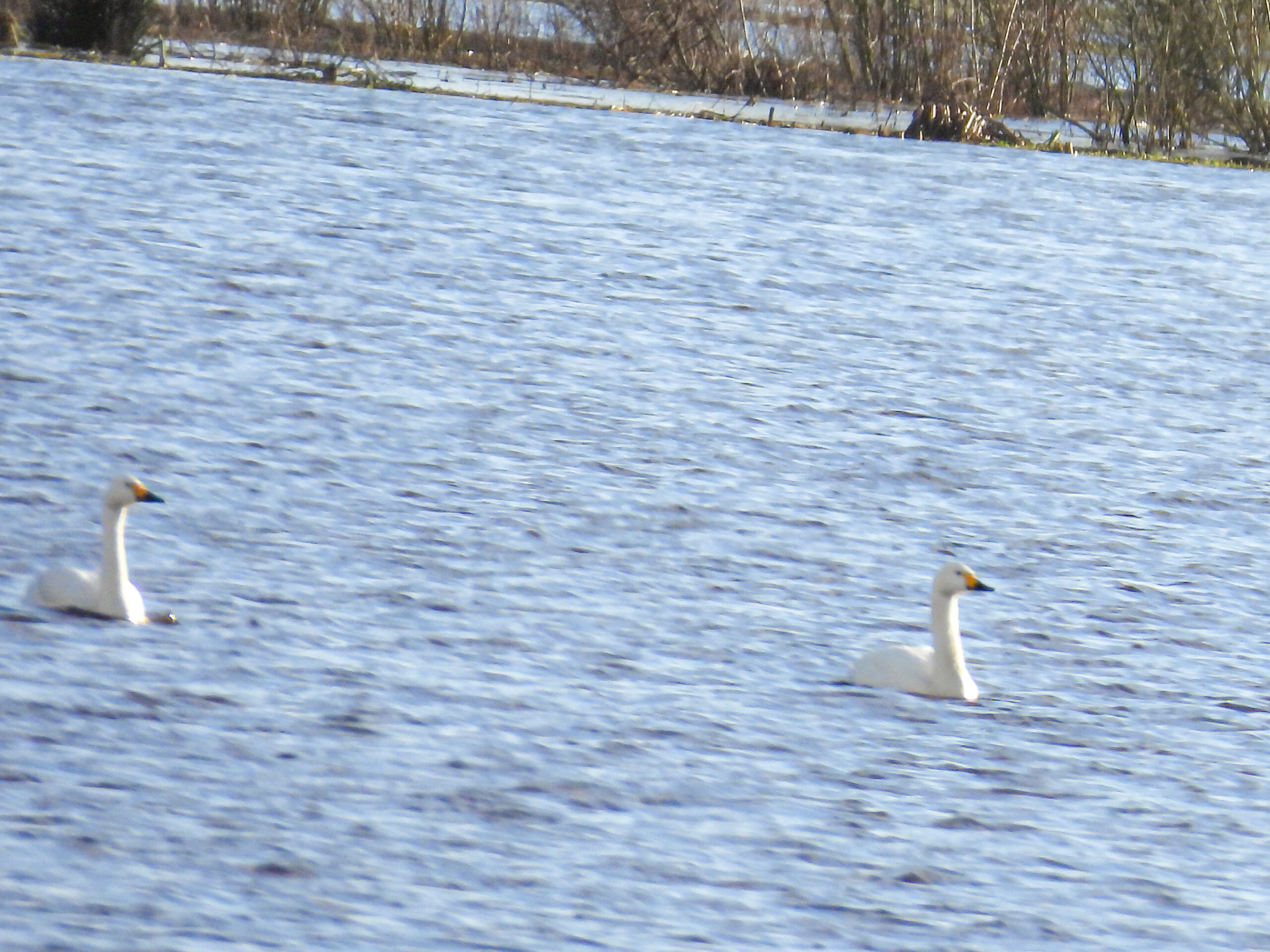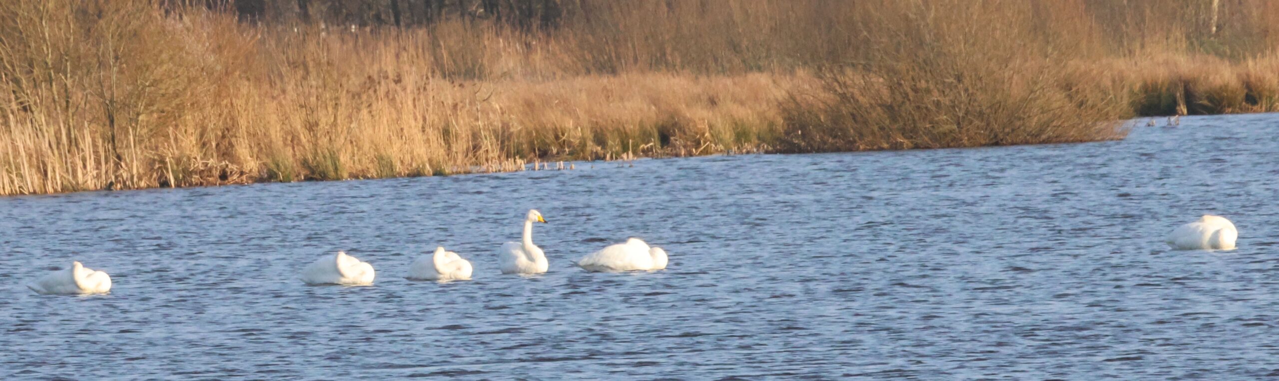 Bij het Eelderdiep zwemmen 6 Wilde Zwanen (waarnemer en foto: Jacob Poortstra).