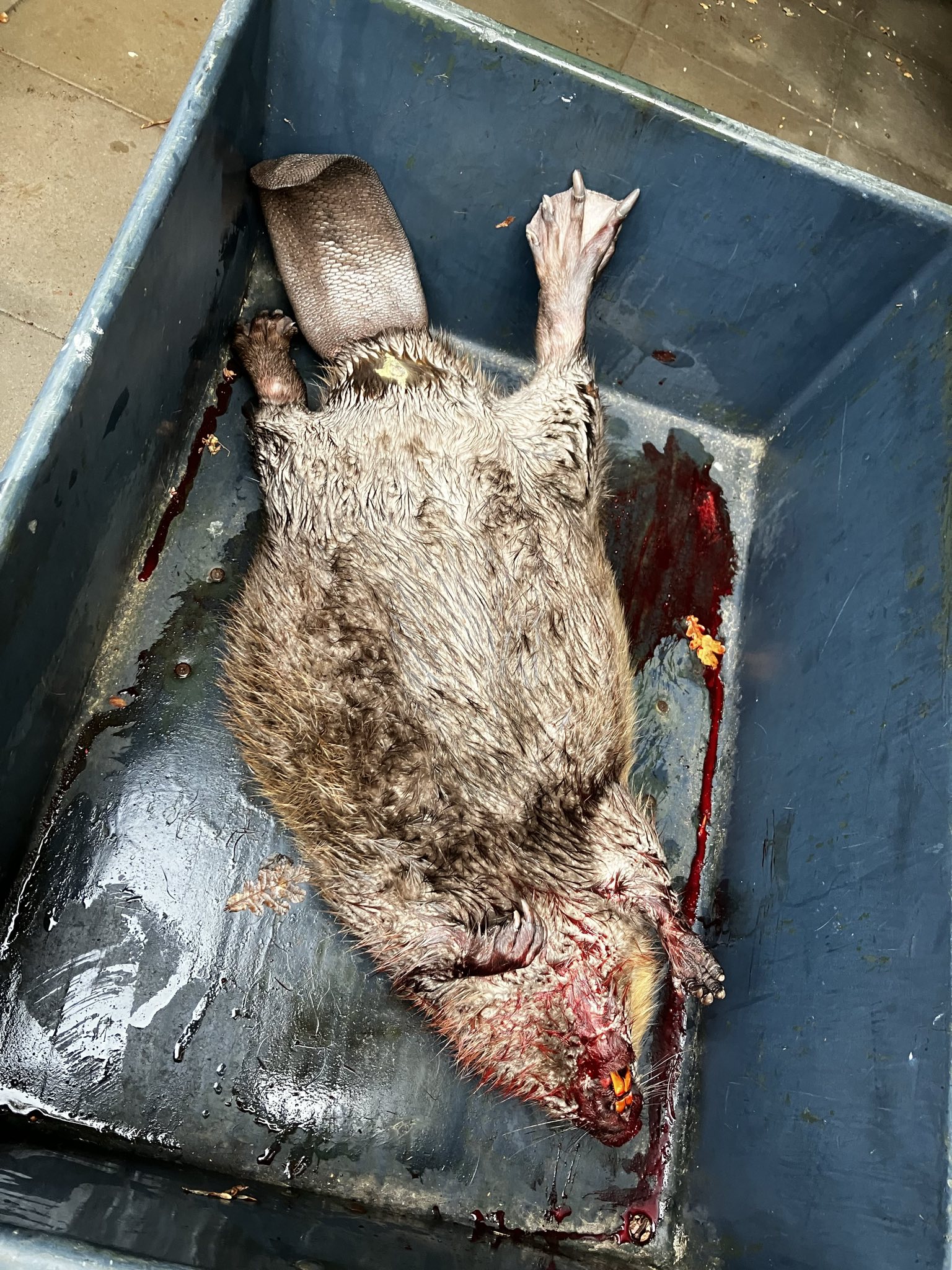 Helaas is een Bever doodgereden bij het Elsburger Onland (waarnemer en foto: Douwe Klijnstra).