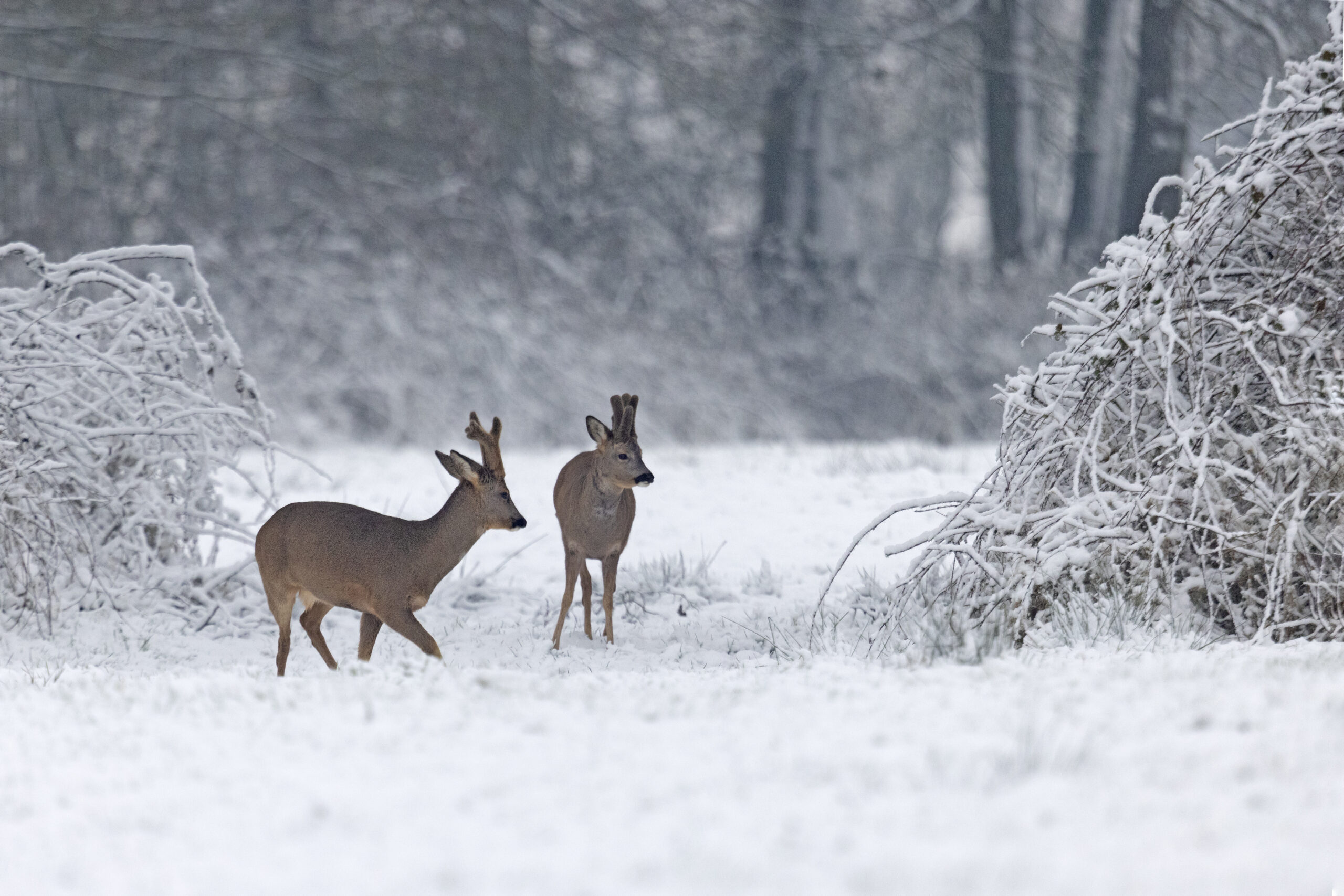 11 februari: In de Zuidslenk zwemmen 3 paar Nonnetjes. Een tweetal Reebokken ontmoet elkaar in de sneeuw bij Het Beeld (waarnemer en foto: Ane van Rees).