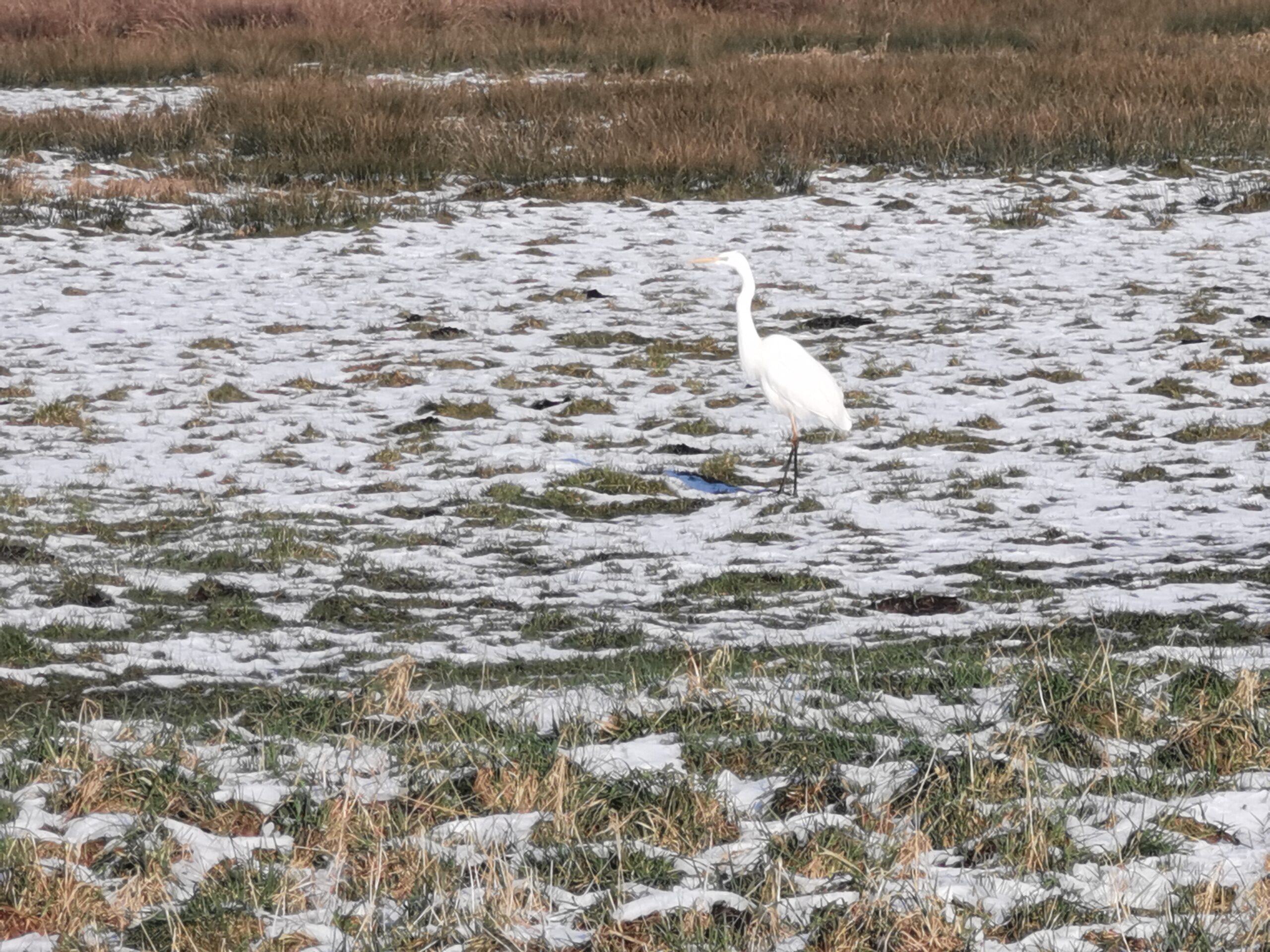 16 februari: In de Stenhorsten staat een Koereiger in de sneeuw (waarnemer: Aart Wedemeijer).