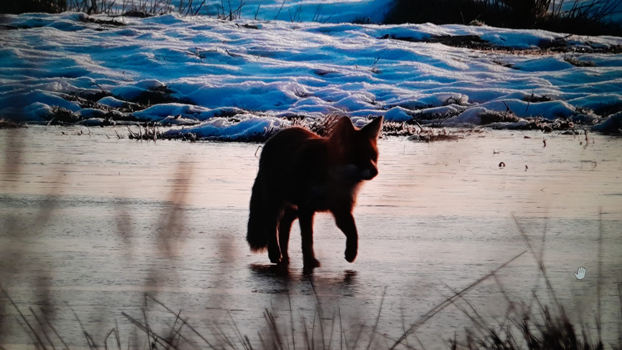 17 februari: Een Vos laat zich mooi zien in Polder Vredewold (waarnemer en foto: Monique Lommert).