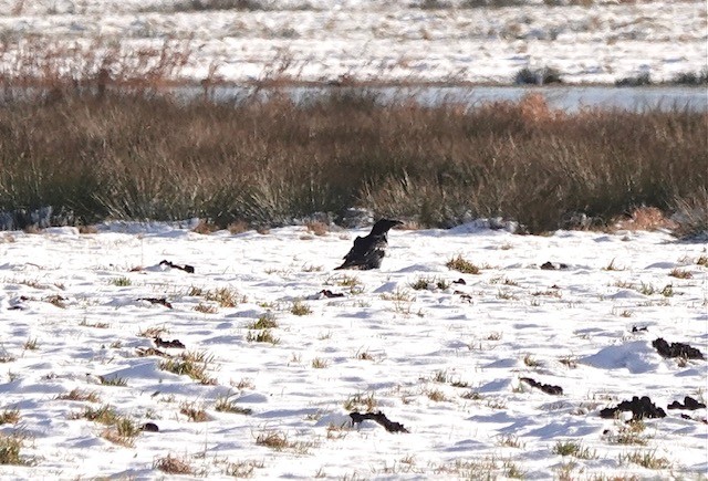 Bij de Broekstukken is een Raaf te zien in de sneeuw (waarnemer en foto: Harriëtte Jongman).