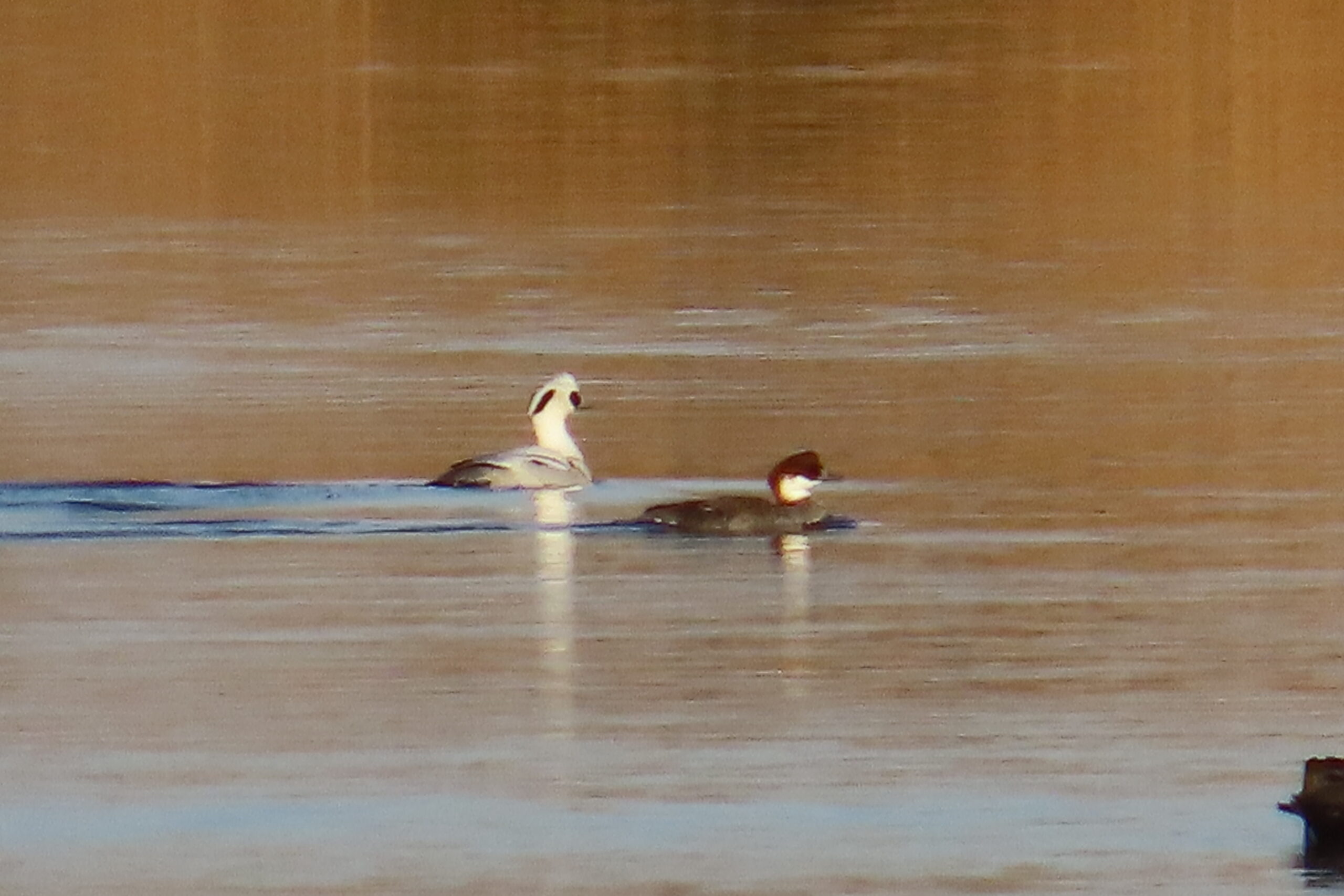 Bij de Blauwvennen vliegen een Roerdomp en 2 Zeearenden over. Bij Vogeltjesland zwemmen 2 paar Grote Zaagbek (waarnemer: Rachel van Werven).