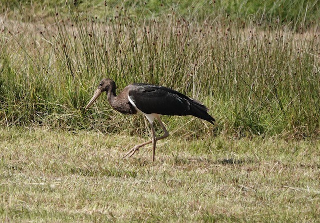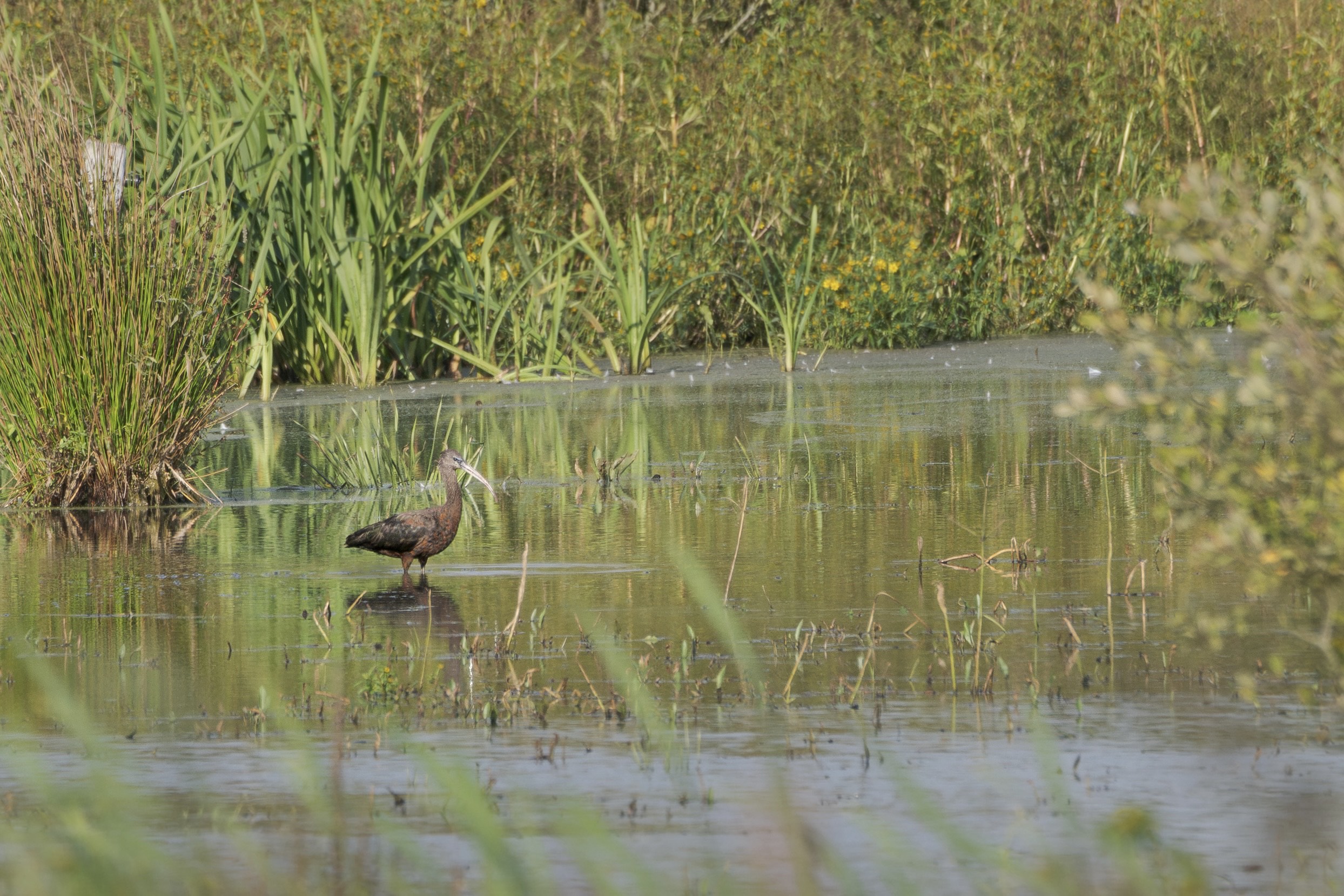 Nagekomen waarnemingen: op woensdag 10 september foerageert een Zwarte Ibis in de Peizerweering, dan komt een Havik aanvliegen en vliegt de Ibis weg (waarnemer en foto: Frans Kromme).