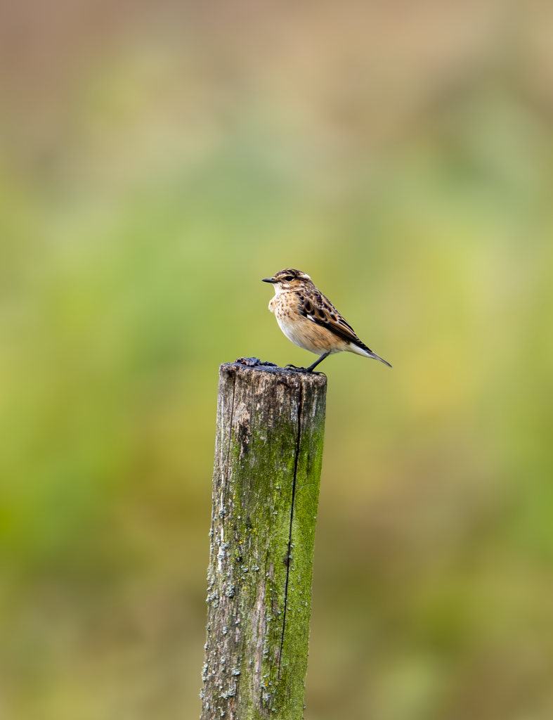 Een Roodborsttapuit zit op een paaltje op De Knop bij Sandebuur.