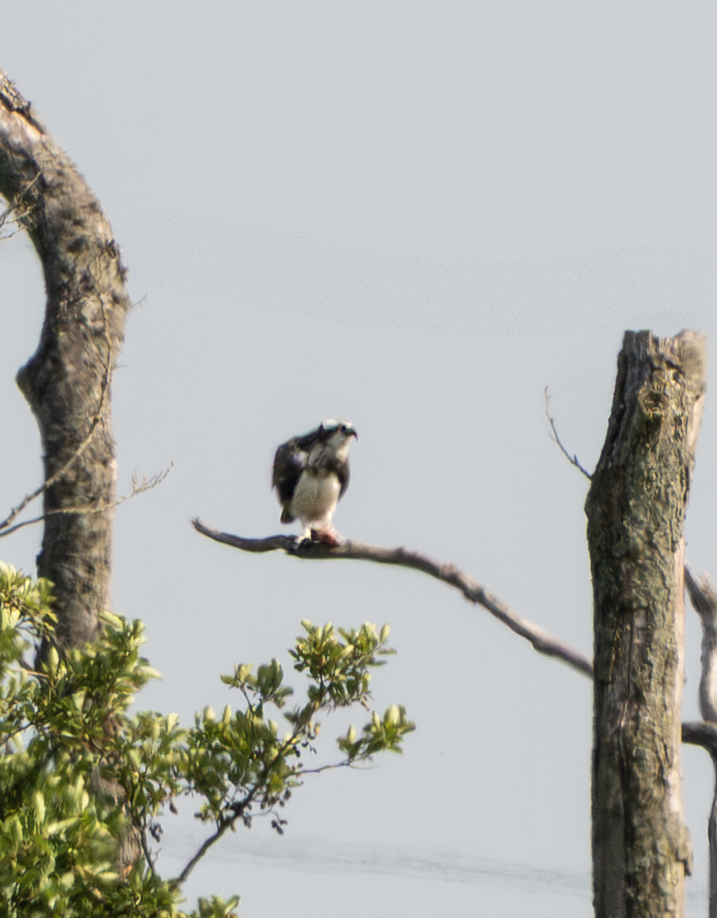 In de Peizerweering zit een adulte Zeearend, die even later een onvolwassen soortgenoot verjaagt (waarnemer en foto: Ane van Rees).