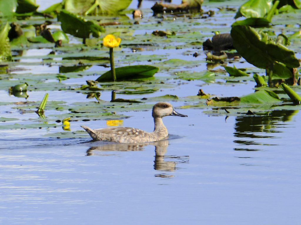 In de Lettelberter Petten is de Blauwvleugeltaling nog steeds aanwezig (waarnemer en foto: Monique Lommert).