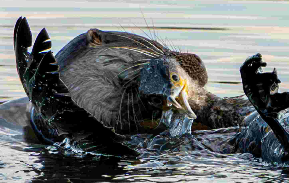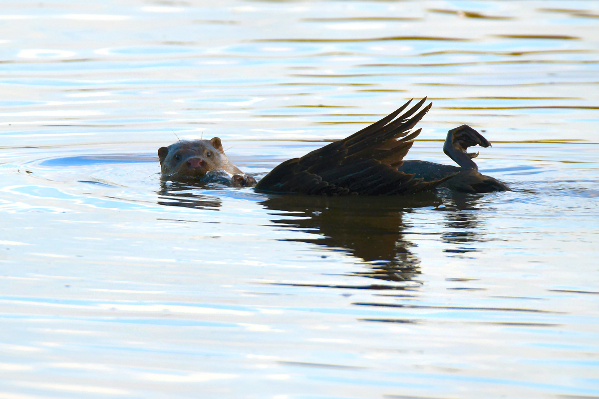 12 september: En alweer is het raak: een Otter die een Aalscholver pakt (waarnemer en foto: Ane van Rees).